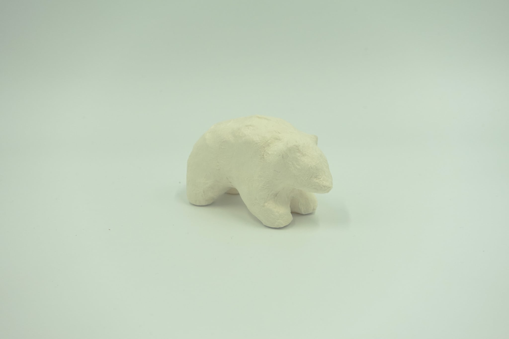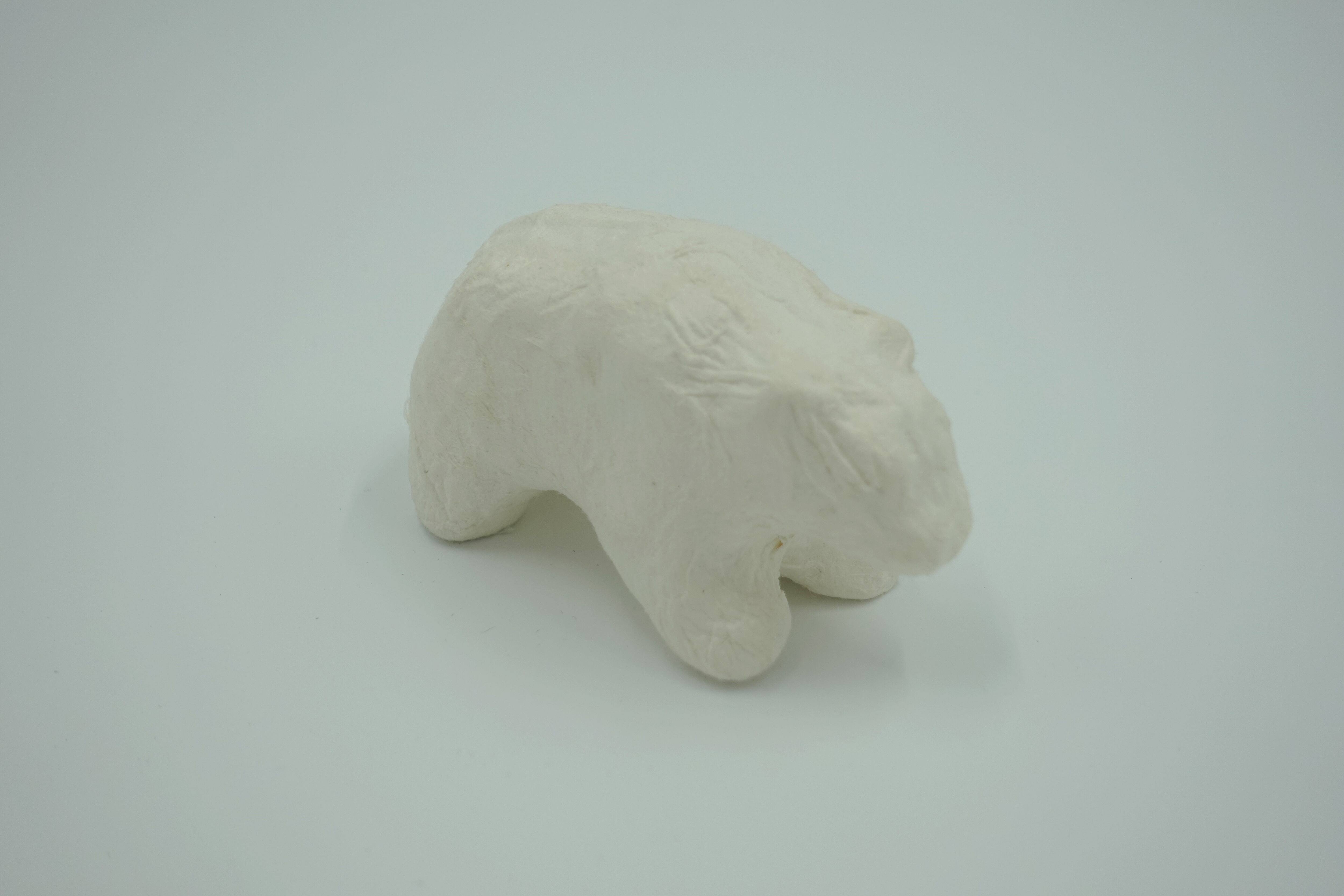 和紙の風合いをそのまま生かした張り子。くまをイメージして制作しました。